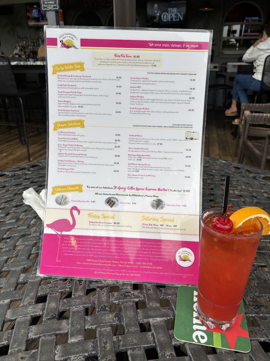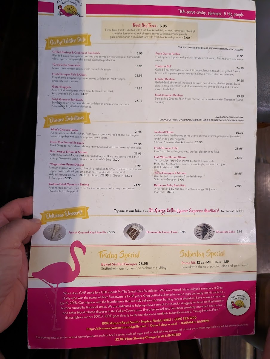 6 oz. grilled Grouper fillet, Swiss cheese, and sauerkraut with Thousand Island dressing.